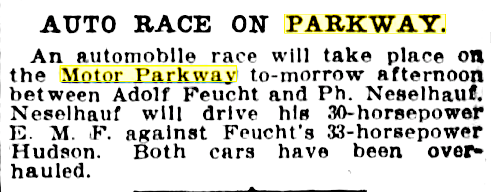 Kleiner’s Korner: And Now For Something Completely Different: Part 5 (Motor Parkway - 1907 - 1929)