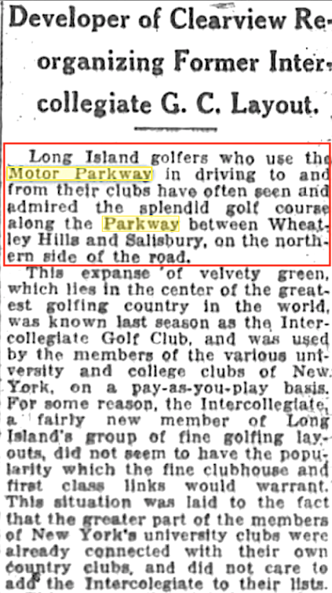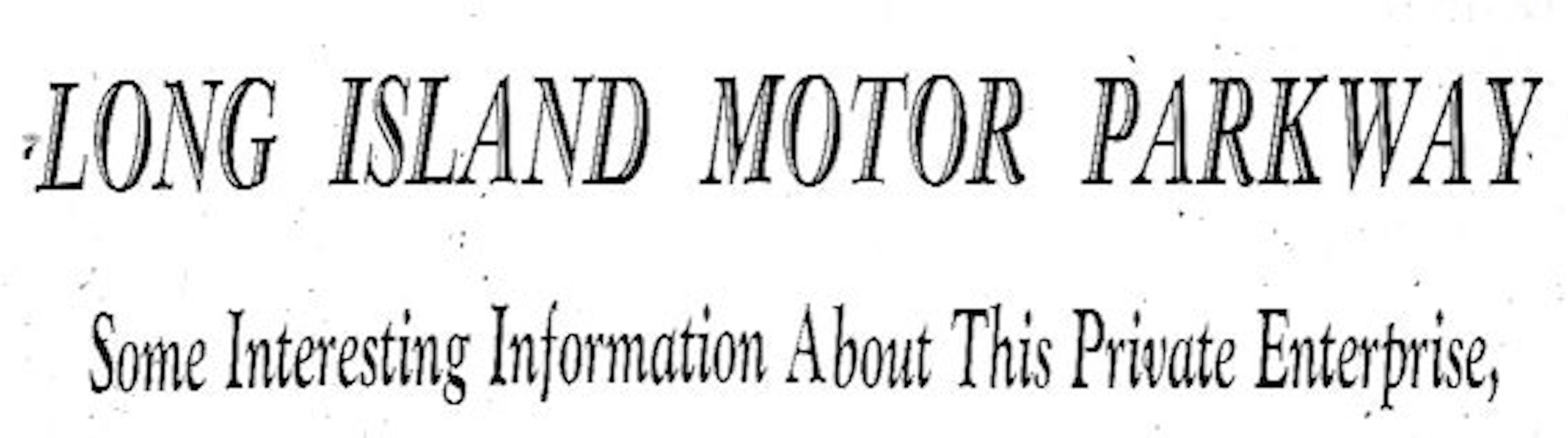 A roadway costing $30,000,000 . . . "The Motor Parkway came in time as a compromise undertaking". (Jul. 26, 1926)