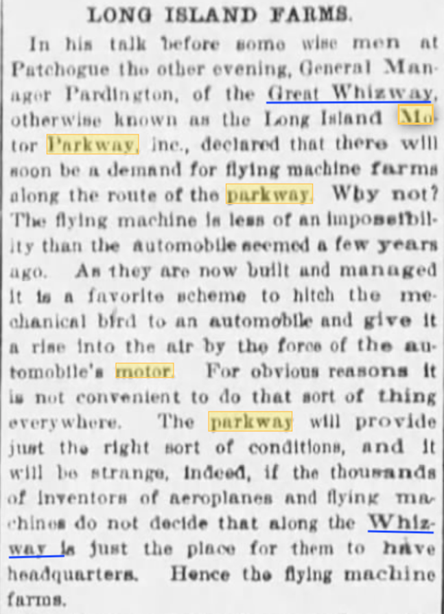 A.R. Pardington discussing "flying farms" along the Motor Parkway. (Feb. 5, 1907)