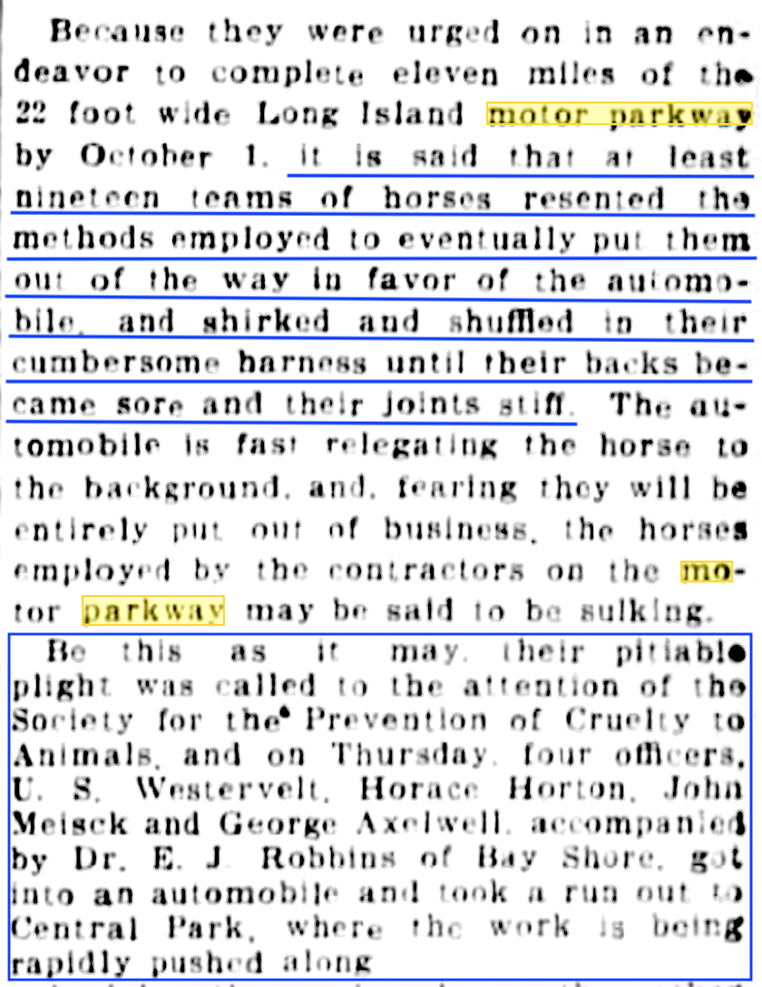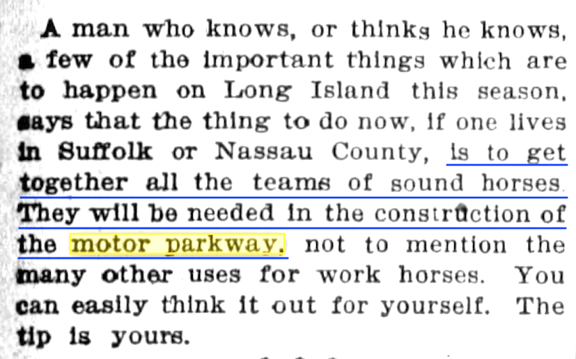 Flying farms, treatment of horses, an elevated roadway, a two-man race, the originator of the idea for the Motor Parkway and much more! Comments, photos and answers are welcomed.