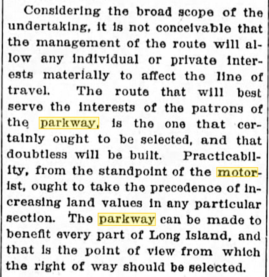 "The parkway can be made to benefit every part of Long Island . . ."