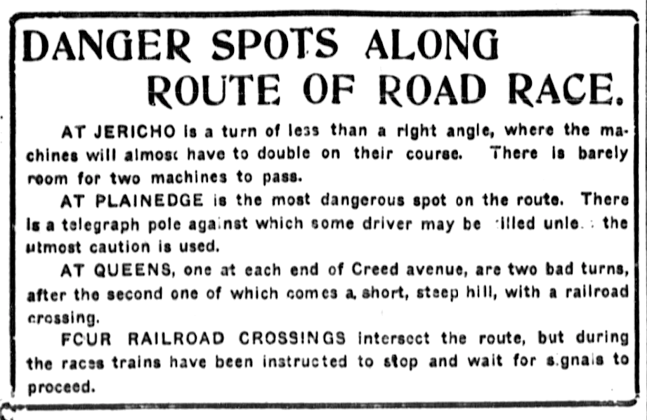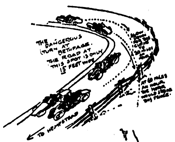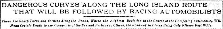 Illustrations in Part 2 of this series feature "The World's" view of the danger of the course due to its curves and speed to be traveled.