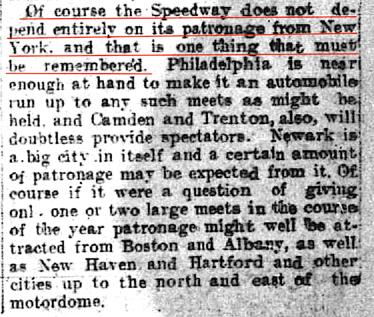 So New Jersey never did get a speedway on which to run the Vanderbilt Cup Race. But it did get the Meadowlands and I'm sure other auto racing venues through the years!