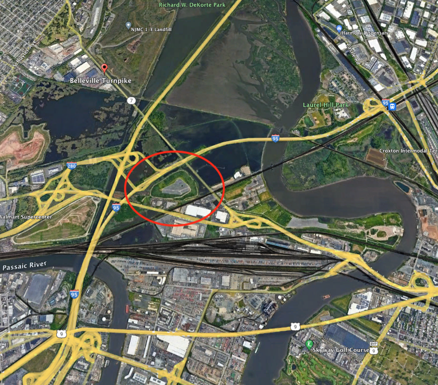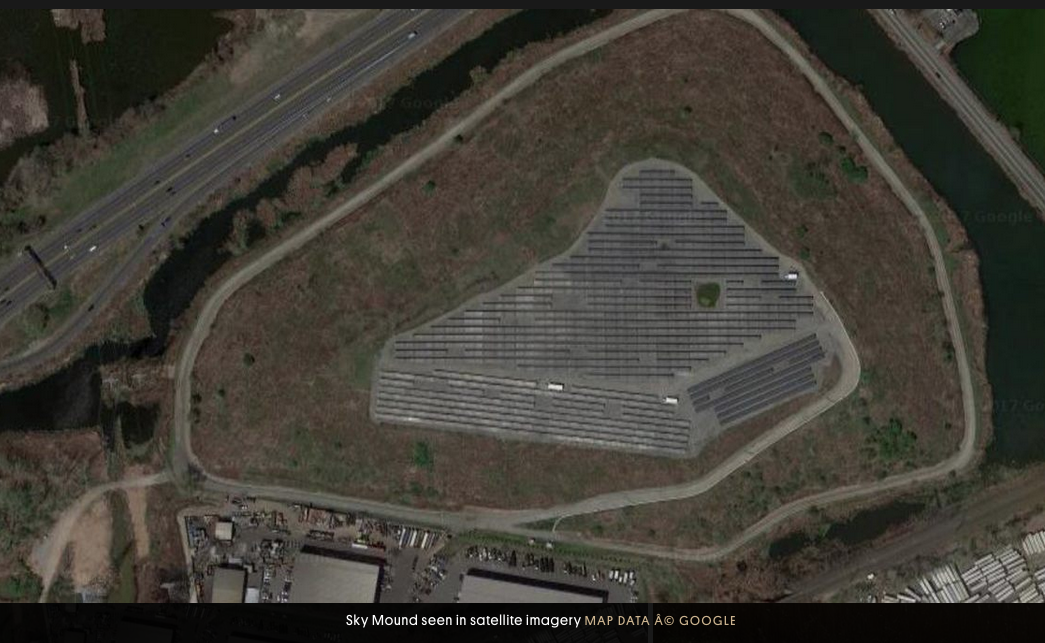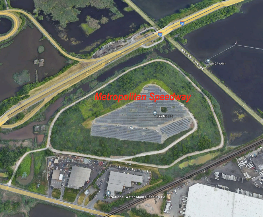In the late 1980s the site was to be the home of the Sky Mound, a work of art to replace a public landfill. However, that plan also doesn't appear to have materialized as rows of solar panels owned by PSE&G now occupy the site which is managed by the NJ Sports and Exposition Authority. (Google Earth)