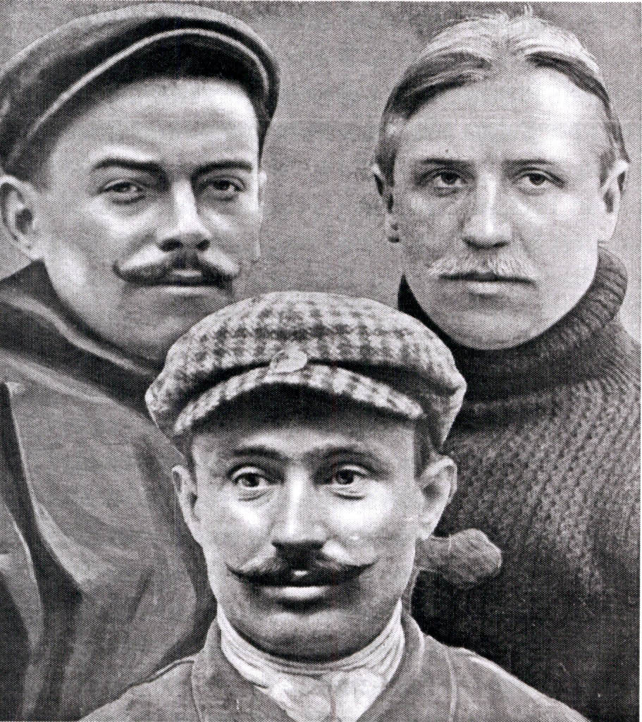 From left to right: drivers, Louis Wagner, Ferenc Szisz and Arthur Duray form La Vie au Grand Air "The Three Champions of 1906."