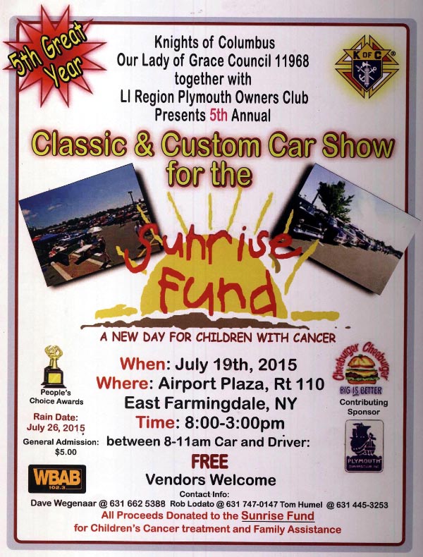 5th Annual Classic & Custom Car Show for the Sunrise Fund, Farmingdale, NY