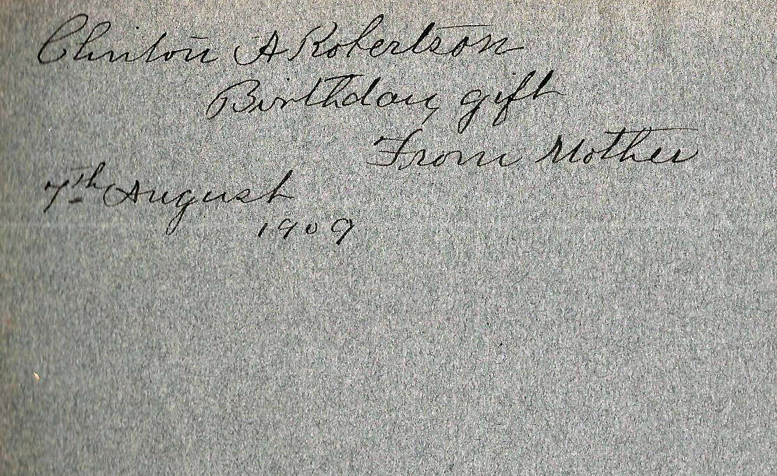 The scrapbook was a gift to Clinton A. Robertson by his mother on August 7, 1909. The 84 photos from 1908 and 1909 were captioned by Clinton Robertson.