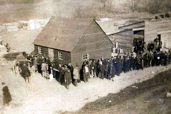 The Mineola field office at payday, 1909