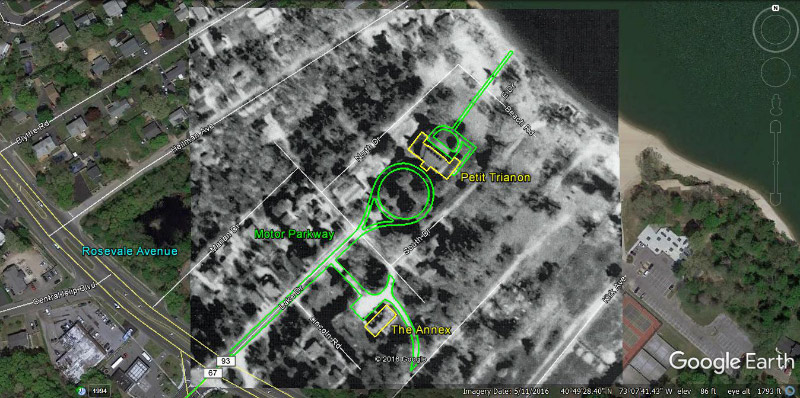 As a follow-up to Sam and Dave's Excellent "Lost" Motor Parkway Adventure to the Eastern Terminus, expert mapper Frank Femenias has used his overlay skills to help us find the Petit Trianon, the Petit Trianon Annex and the Petit Trianon Stairway to Lake Ronkonkoma.