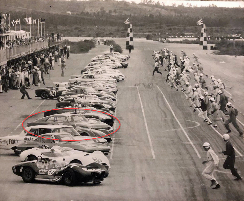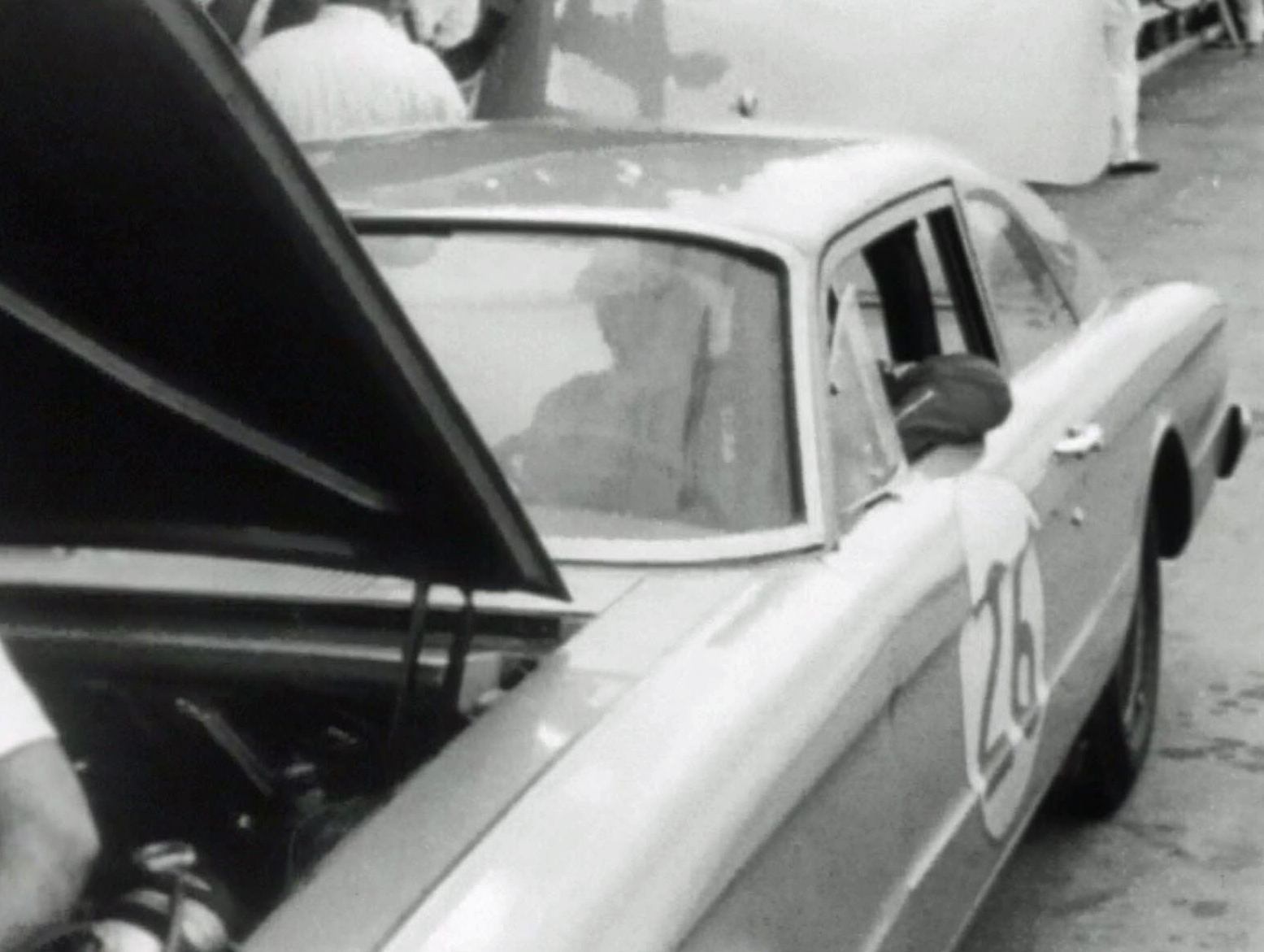 This modified Ford Falcon Futura, running as #26, can be seen battling Jaguars, Cobras and Ferraris. The driver was Marvin Panch, a NASCAR race driver who often drove for Holman Moody on ovals and road course.