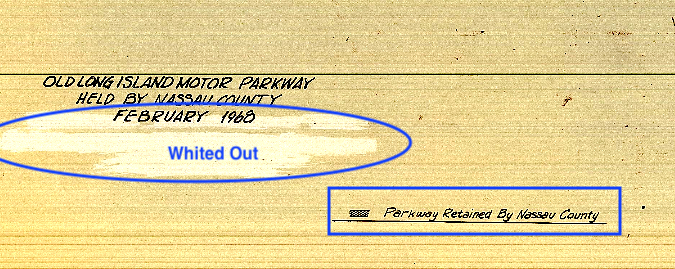 Interesting notes added in pertaining to an exchange of land between Nassau County and Levitt and ownership assumed by Mineola. (Credit: NCDPW)