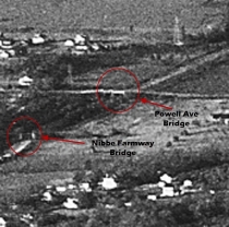 1935 Image of the Powell Avenue Bridge also showing the Nibbe Farmway Bridge