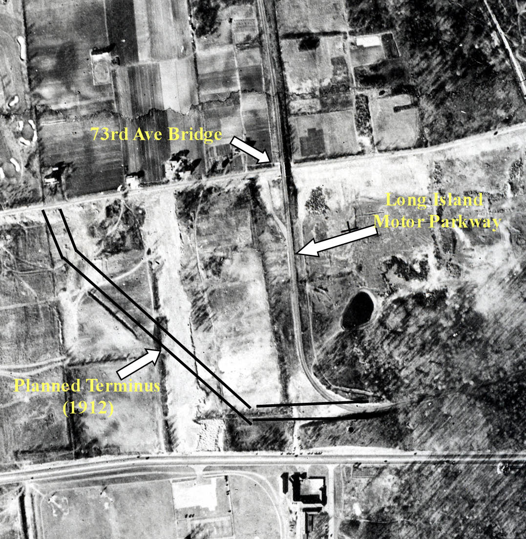 As documented in a 1912 survey map, this was going to be the planned western terminus ending at 73rd Avenue. I would assume that the Long Island Motor Parkway, Inc was unable to acquire the land north of this site needed to connect to Nassau Boulevard. They decided to abandon the 73rd Avenue entrance and built the parkway further to the east with the entrance/exit at the busier Nassau Boulevard.