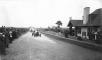 The relatively small course and greater number of entries provided many opportunities for cars to compete. The #16 Benz driven by David Bruce-Brown pulled ahead of the #9 Amplex driven by Walter Jones as they approached the Massapequa Lodge. The bridge over Wantagh Avenue was approximately 1/8th of a mile to the west in the background.