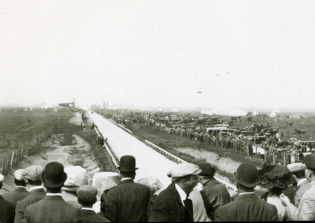 While the early course configurations approached 30 miles, the 1910 race was compacted into 12.64 miles, the same configuration as the 1909 course. The Long Island Motor Parkway made up only 5.15 miles of that total giving approximately 250,000 people in attendance virtually unrestricted access to 7.49 miles of public roads.