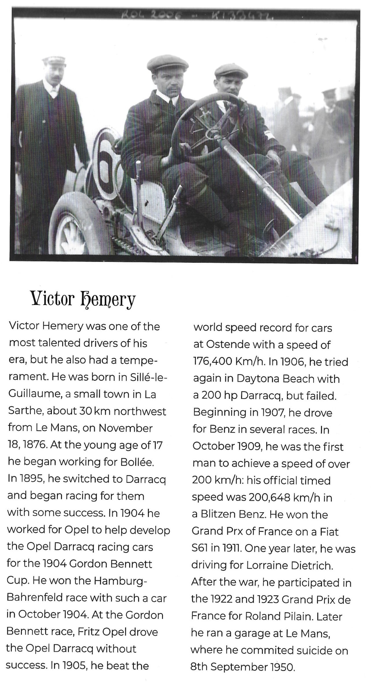 Hemery's Darracq did not win the Paris to Vienna but was in 58% of the skilled racers to actually complete the course.