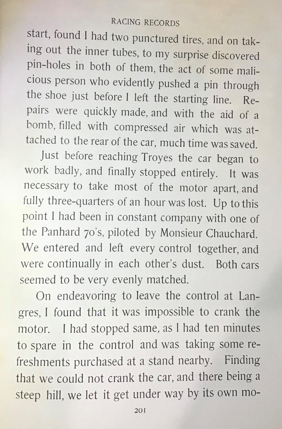 Automobile manufacturer Clement did not race a car of his father's company. Instead, Clement drove a large Panhard, but still failed to finish.