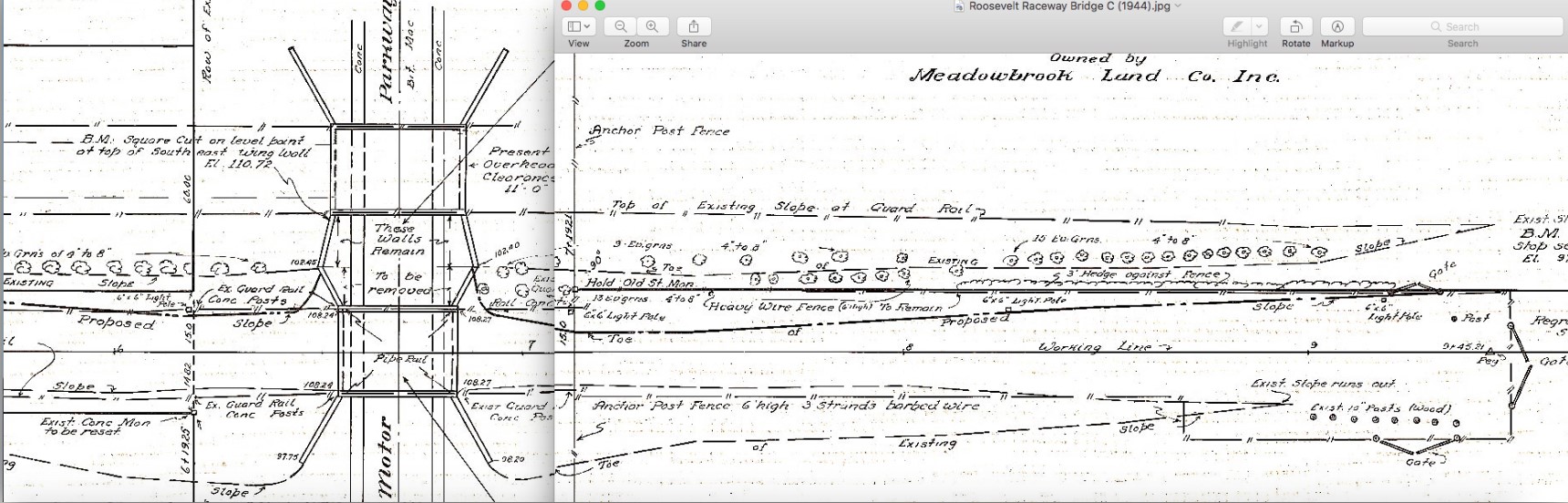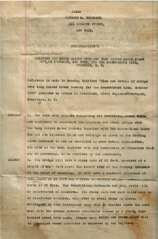 Once again, Bill Cruickshank has gone into his grandfather Otto McCamish's archives and photos and sent original plans for the construction of the 2nd bridge going over the Motor Parkway at Roosevelt Field to link the Meadowbrook Country Club's properties.