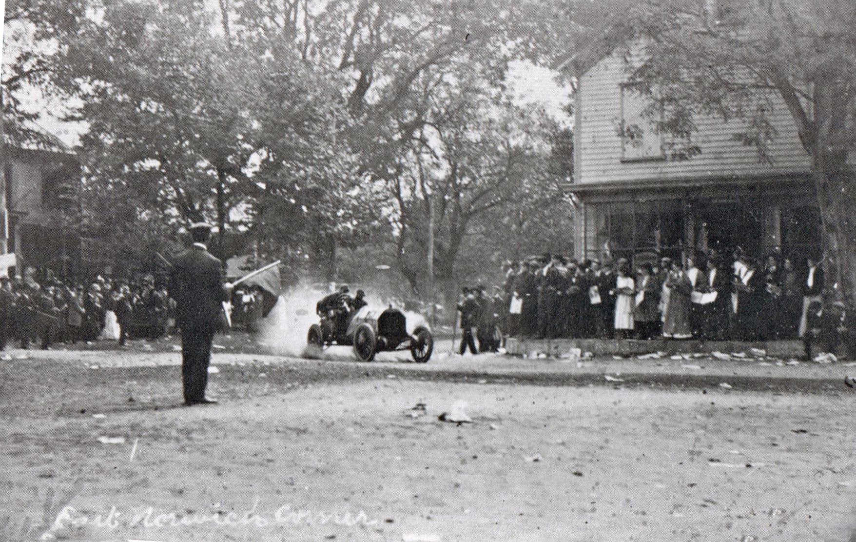Then: A miles long straightaway would lead to the big dip and turn in Manhasset where big crowds gathered in front of Schneider’s Hotel.