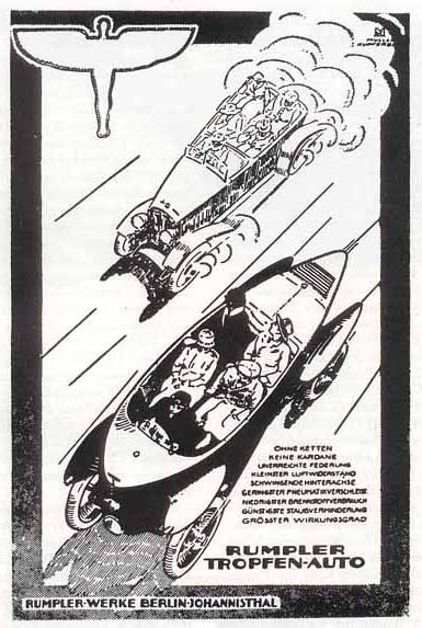 Tropfenwagen in German translates to 'Teardrop Car', and Rumpler has the honor of designing the very first 'aerodynamic' automobile, pre-dating the Chrysler Airflow and Czech Tatra vehicles of a few years later. Benz also had a Tropfenwagen that was built on a Rumpler chassis.