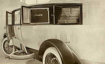 Of note in this last photo are the semaphore turn signals that can be seen sticking out from the side of the car. These may be the earliest incarnation of these that I have ever seen. Like a 1950's era VW Beetle, these would mechanically pop out from the side of the vehicle with a small light at the end of the 'flag' to denote the turning intentions of the driver.