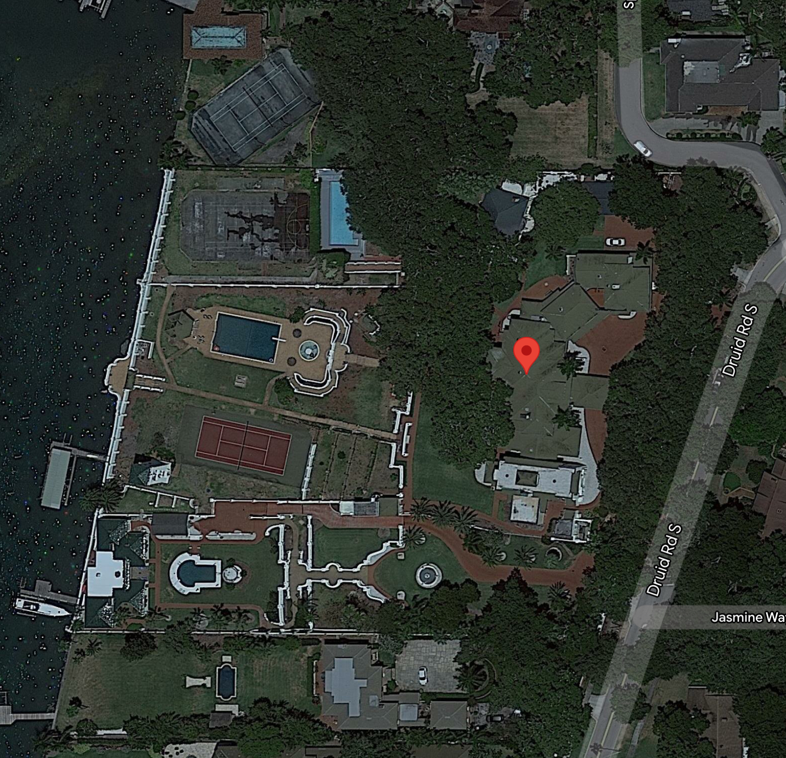 A closer Google Earth view showing the 5.6-acre expansiveness of the current beachfront property. The additional wings can be seen on the original mansion.