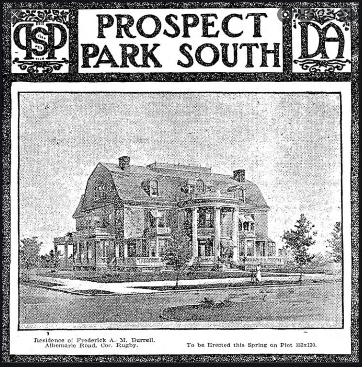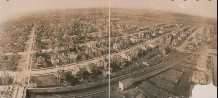 An early 1900's aerial of Prospect Park South showing its luxurious homes.