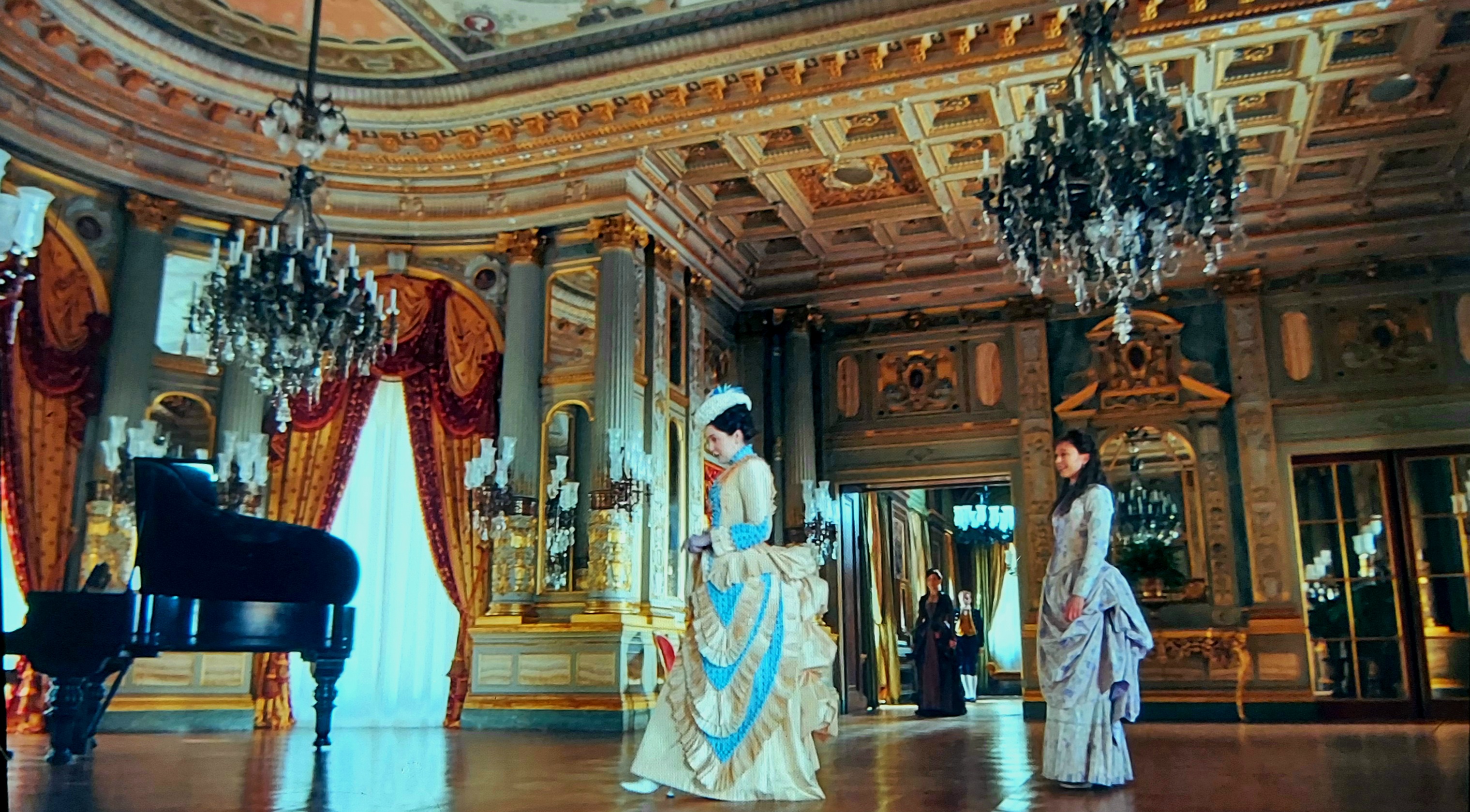 Consuelo Vanderbilt's actual bedroom at Alva Vanderbilt's Marble House is used as George Russell's bedroom.
