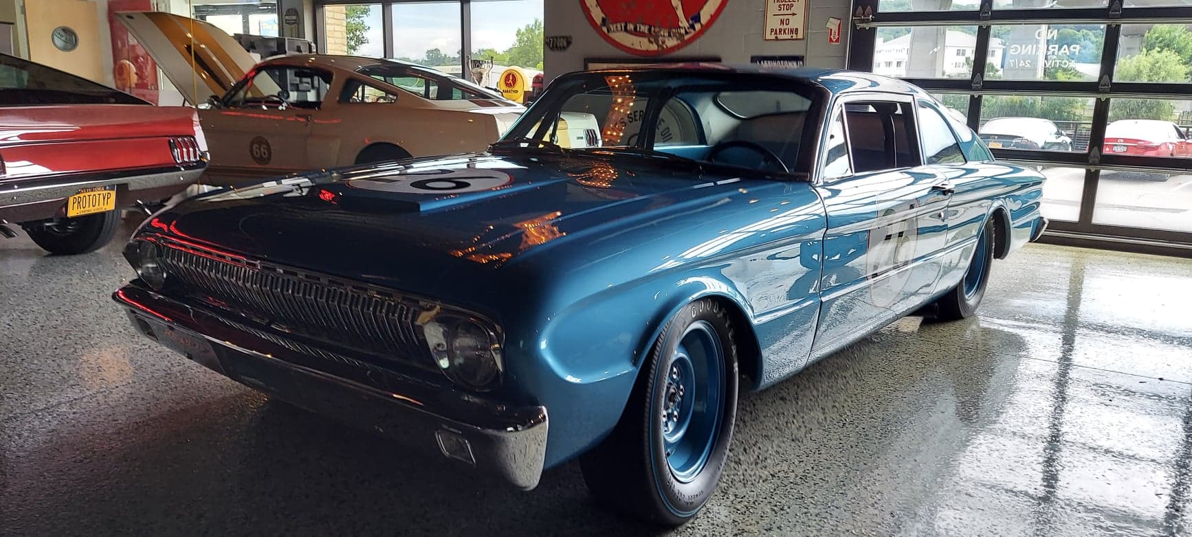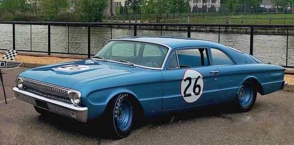 The Falcon Futura's inline 6 cylinder replaced was with a race -tuned Hi Po 289, and it and the Ford 9 inch rear end were both complimented by a Borg-Warner T-10 transmission borrowed from GM as Ford did not have an aluminum trans at the time.