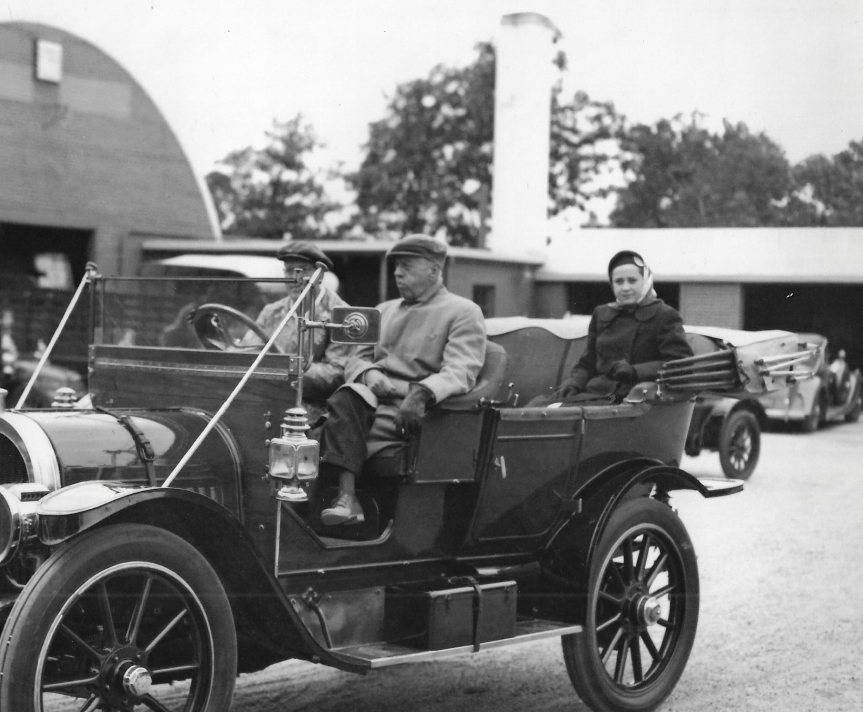 Joe Tracy and Austin Clark's sons in a 1907 Locomobile Model E Tonneau in the late 50's