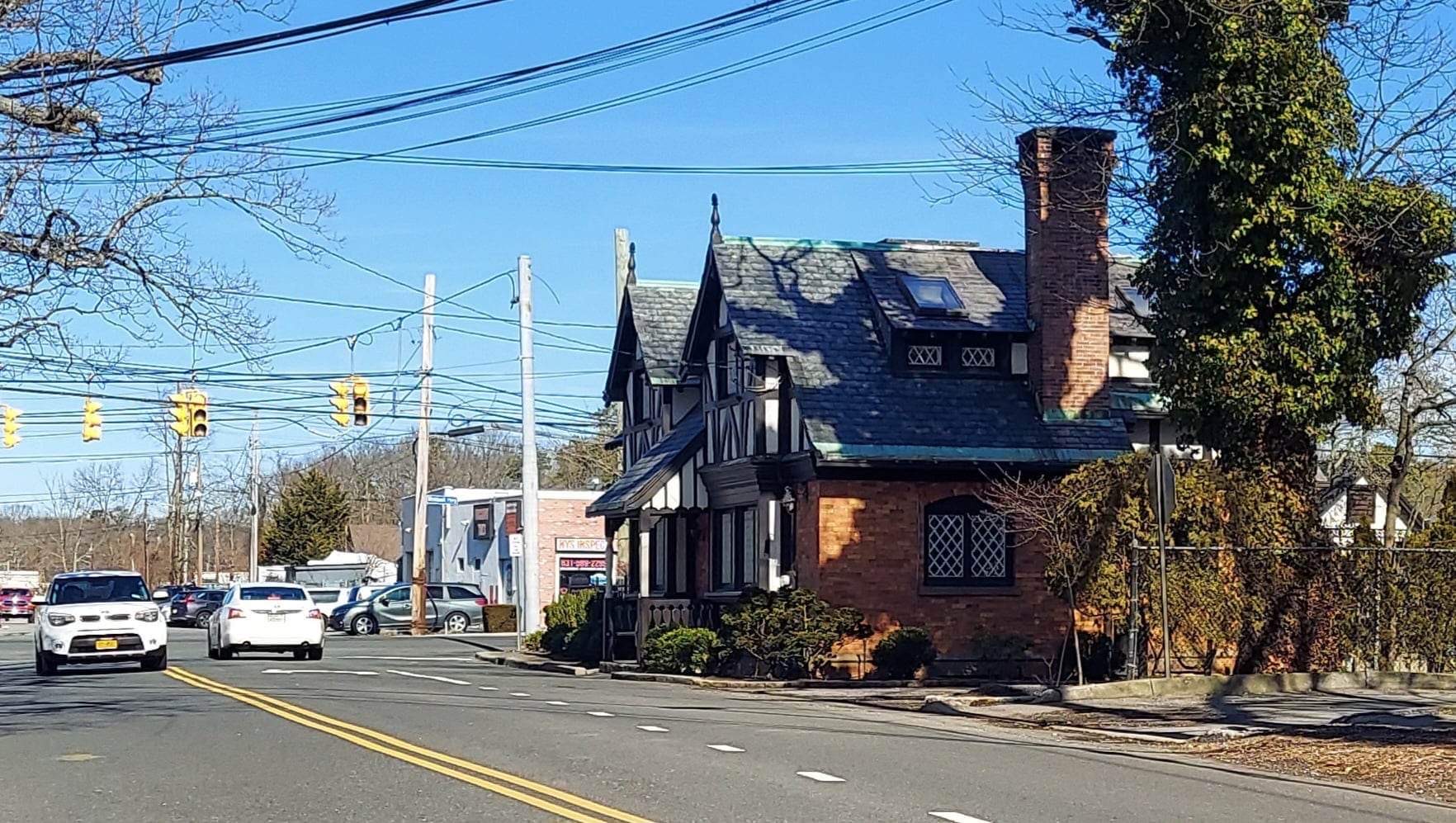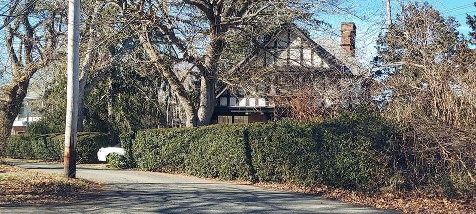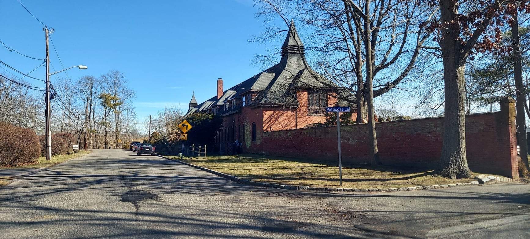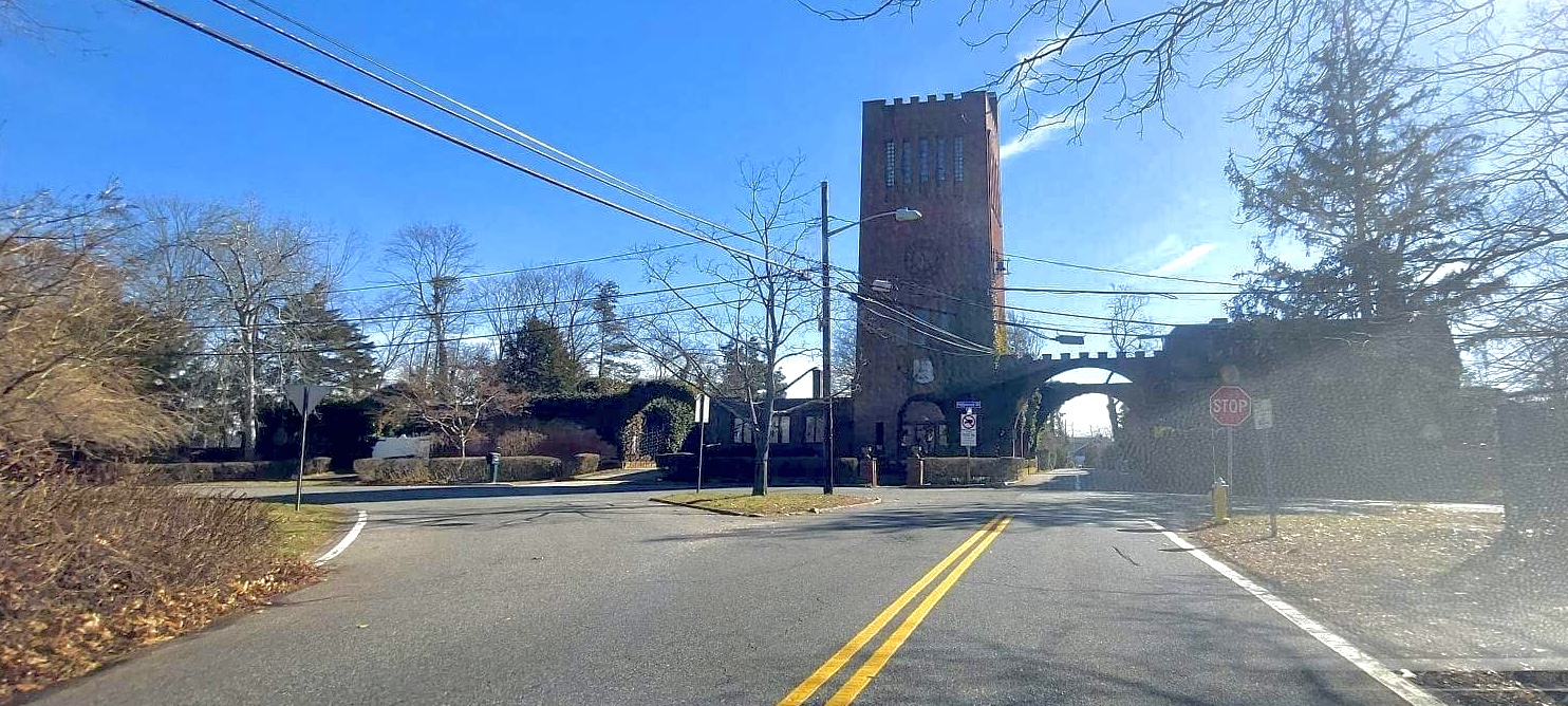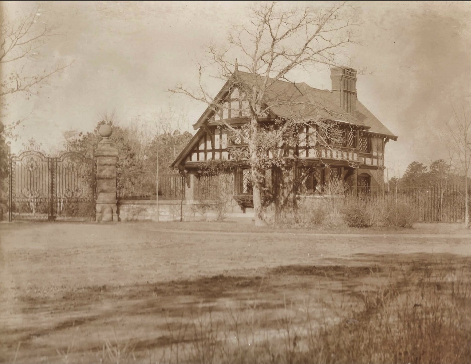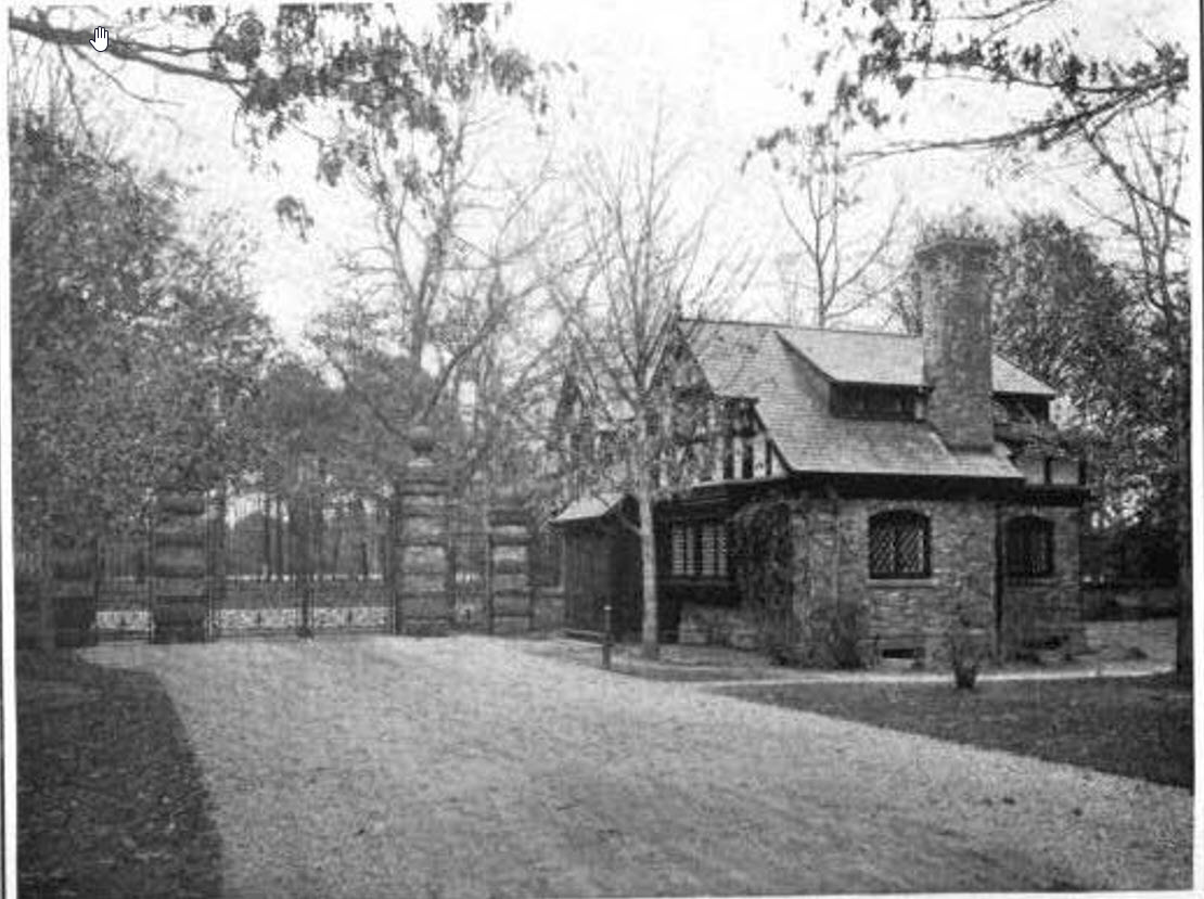 Idle Hour had an East and West entrance with a gate lodge at each entrance with the East entrance being the main entry point. Seen here is the East gate lodge in its original configuration from the estate property looking out towards today's Montauk Hwy.