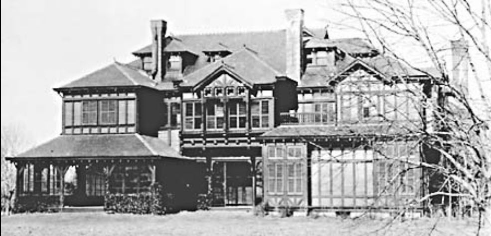 The first Idle Hour mansion as seen in 1894. The wooden, Richard Morris Hunt designed home was intended to be not much more than a hunting retreat on the 900-acre Oakdale, Long Island parcel Vanderbilt purchased in 1878. Despite the humbler beginning, it grew to be a 110-room mansion that became the completed family home in 1882 and even a later honeymoon destination for two of Willie K and Alva's children. Both daughter Consuelo, in 1895, becoming the Dutchess of Marlborough, and later son Willie K. Jr. honeymooned at Idle Hour.