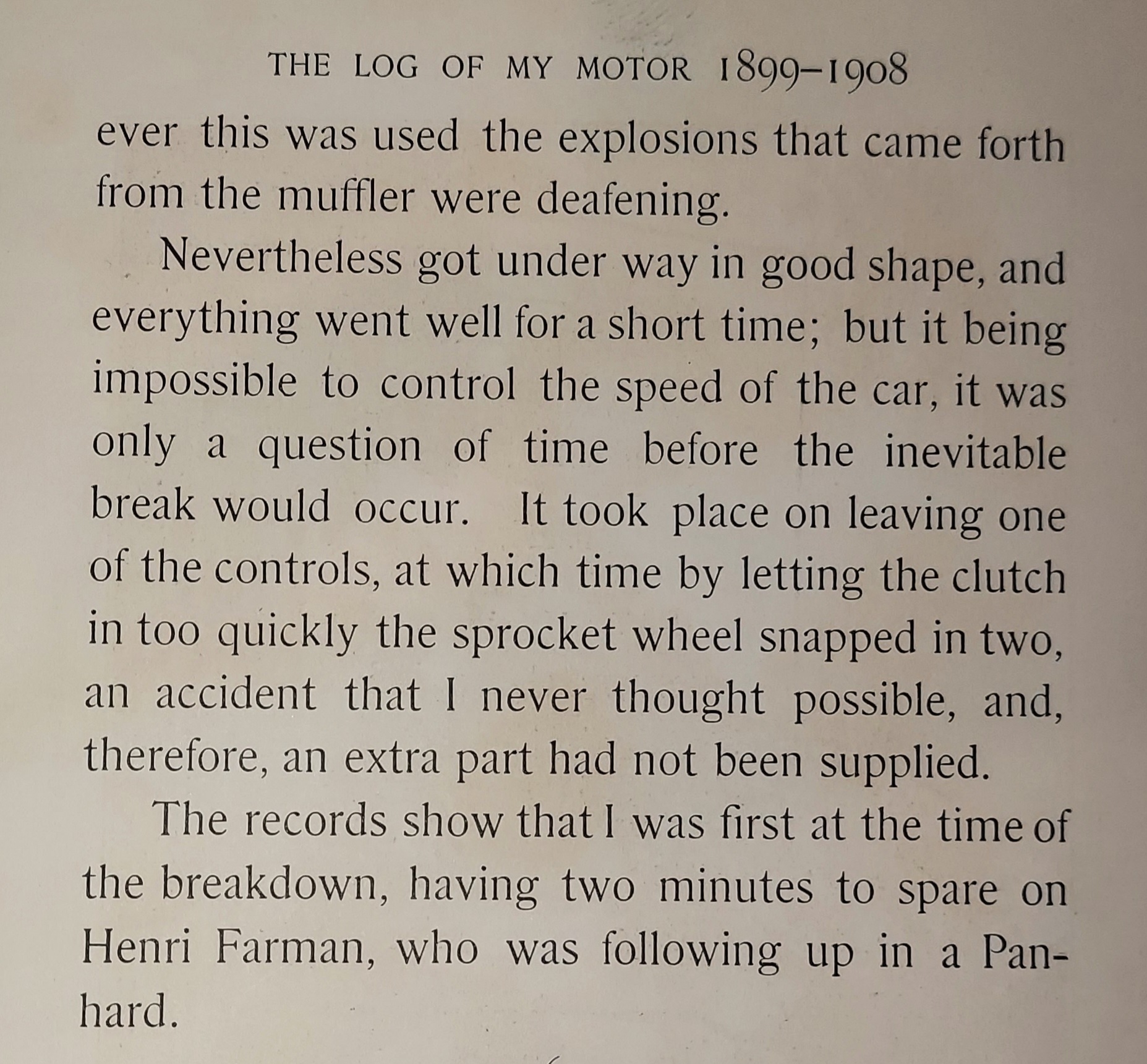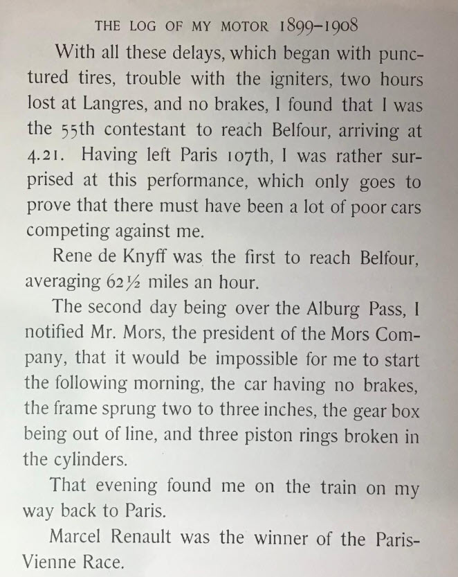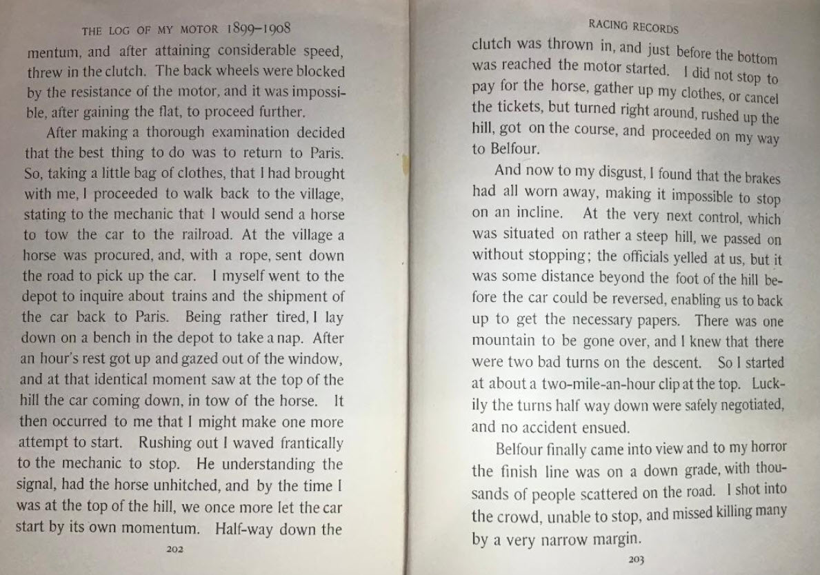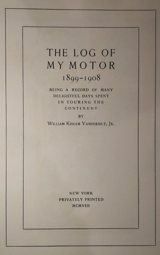 In 1908, W.K. Vanderbilt Jr. privately printed his automotive diary, "The Log of My Motor" noting his early racing records and achievements.