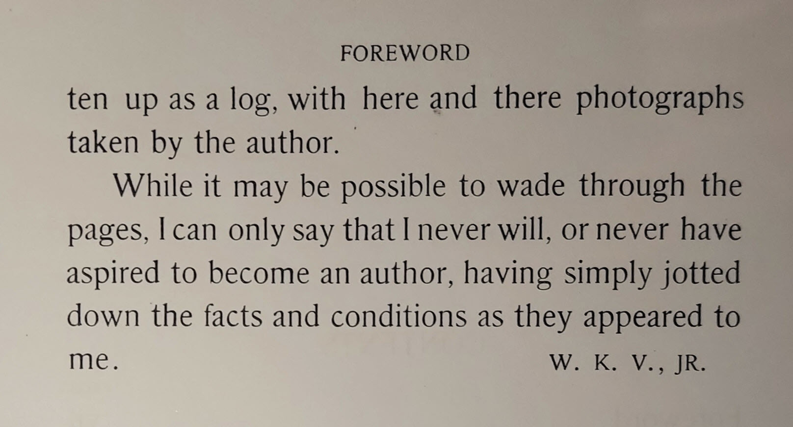 Forward by W.K.V. Jr.