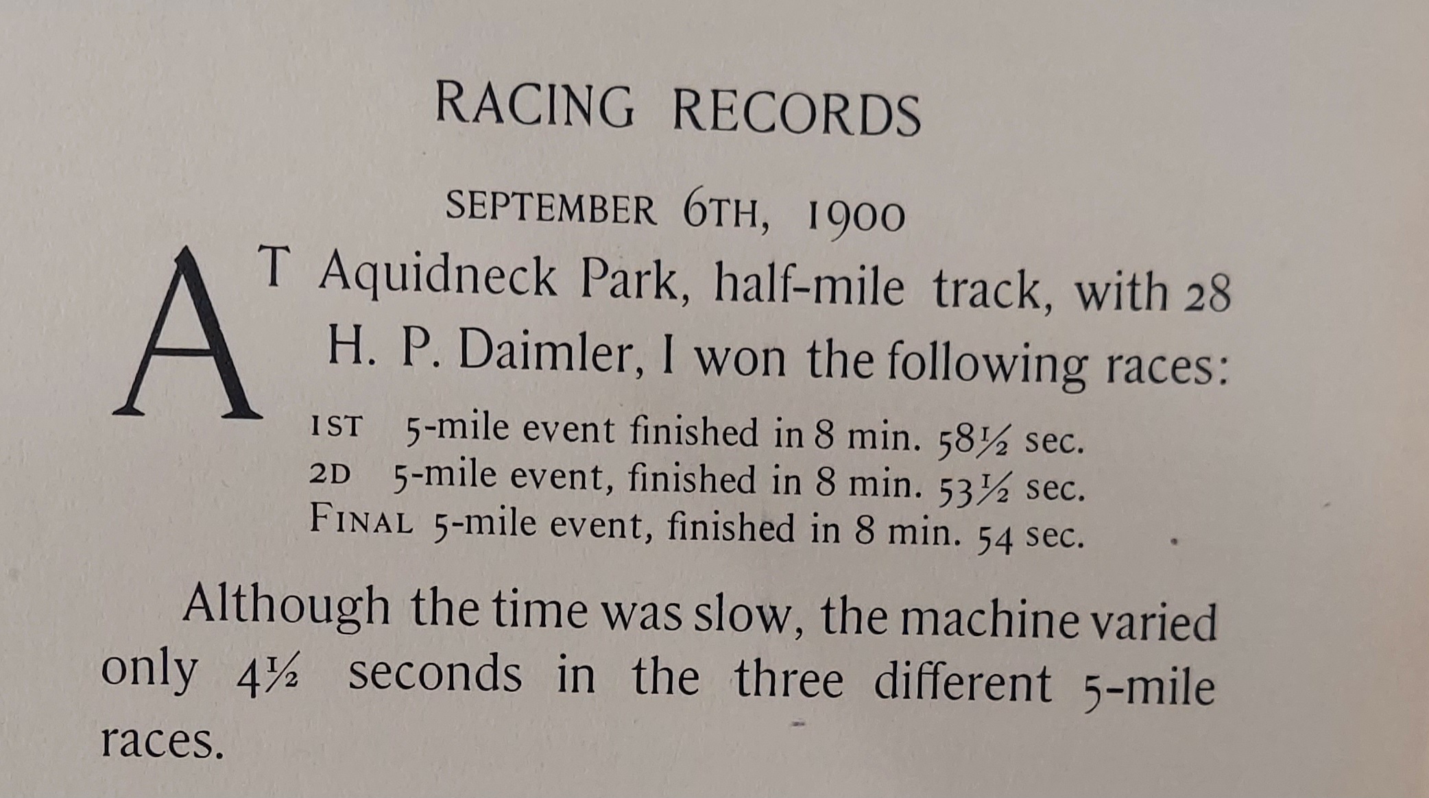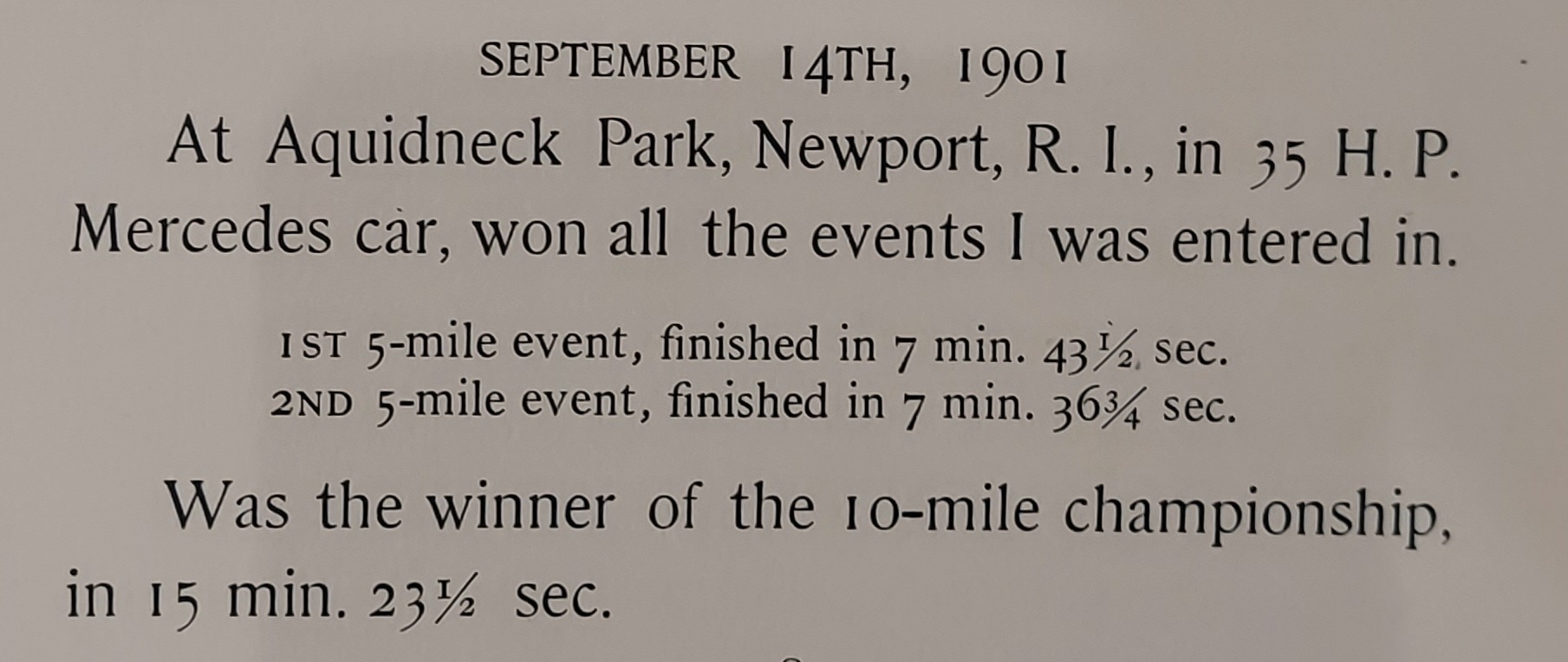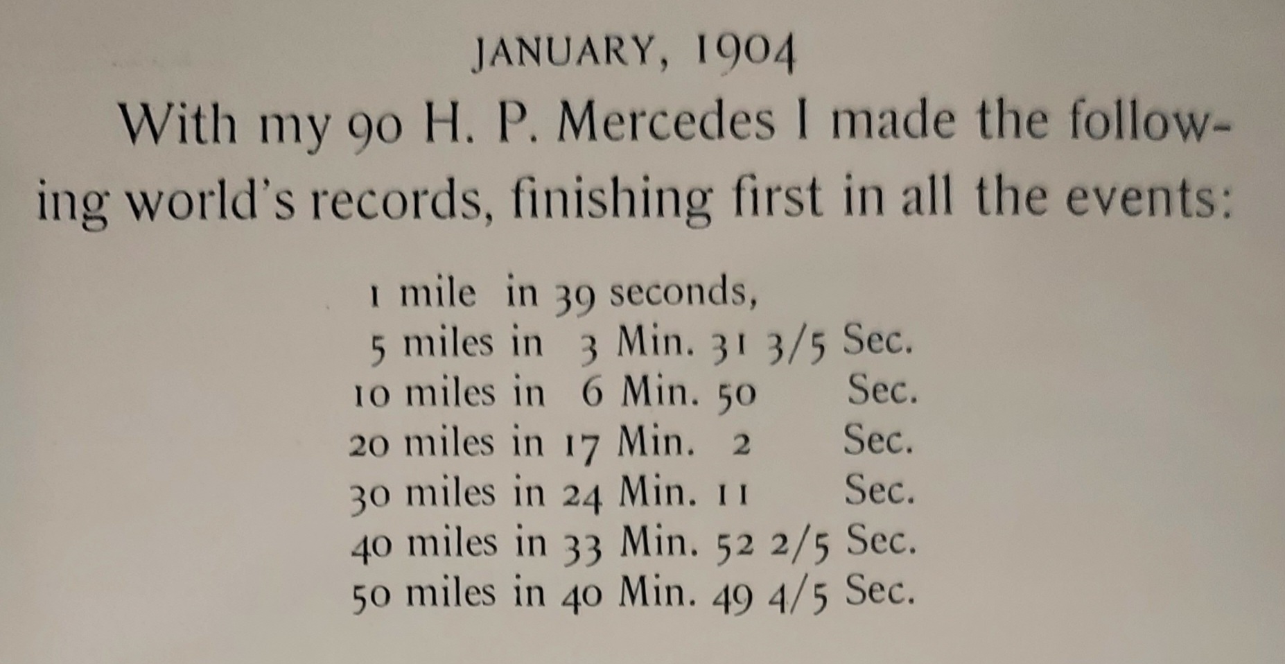 A blistering mile in only 39 seconds...very speedy for the day!