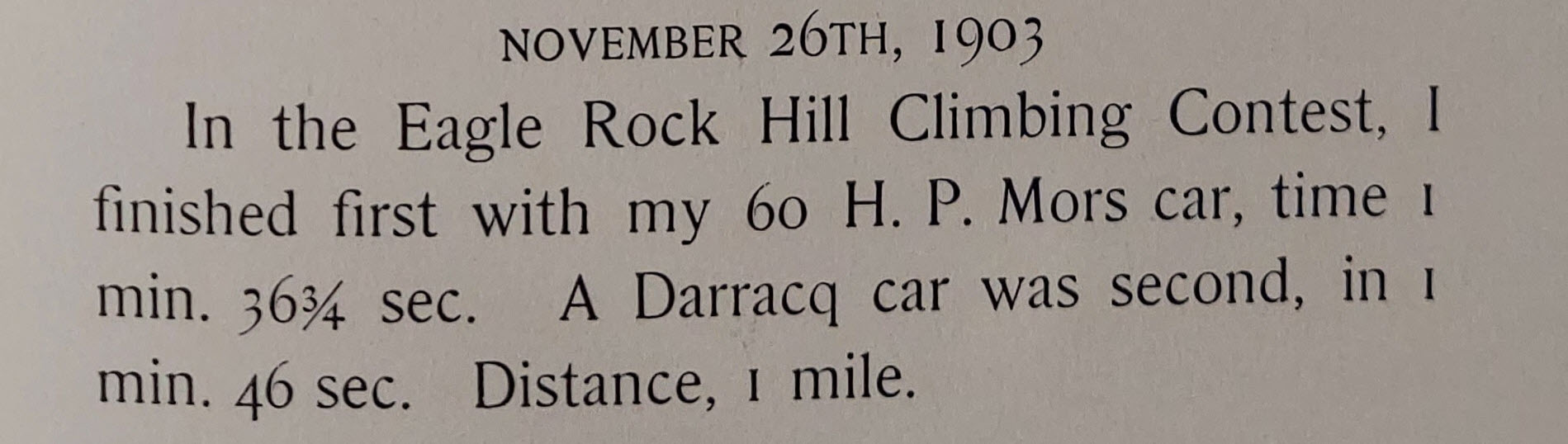 Eagle Rock Hill Climb Nov 26th 1903