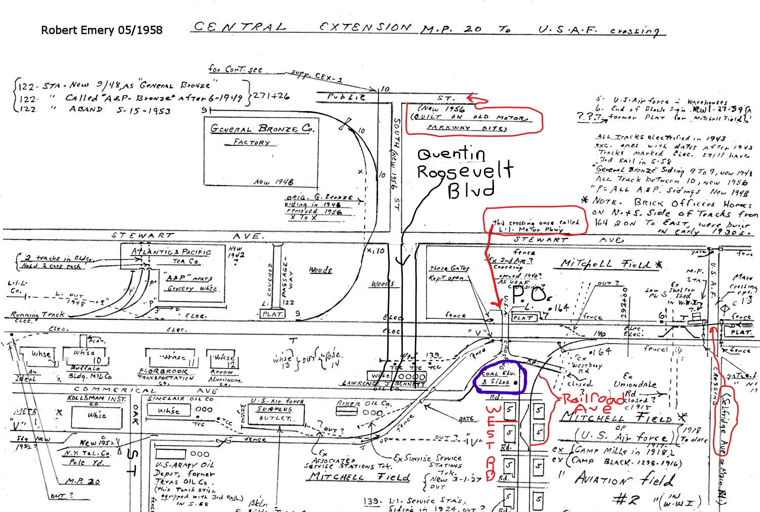 Hi Greg - Thanks for the mention of me with the Robert Emery LIRR map above, but I’m pretty sure I was wrong about the location of the Garden City Coal & Wood Yard. Below is 3 screenshots - my comment about where this Coal Yard actually was, another marked Robert Emery Map ( his sketches are excellent ), and a 1914 map of Uniondale & Garden City. There was Meadowbrook Club, but no military operations yet.