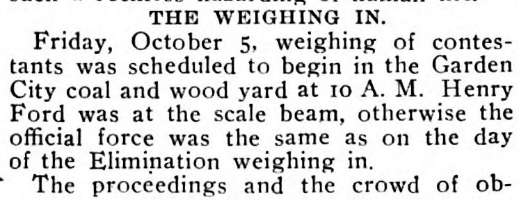 One of the 4 judges for the weigh-in was none other than Henry Ford as stated in the article from the Cycle and Automobile Trade Journal, November 1906.