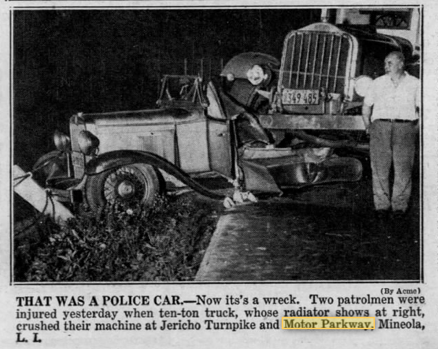 I guess we can assume the July 1933 wreck involving the police car was a Nassau County police vehicle if the Motor Parkway force was dismantled by that time.