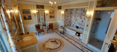 Willie K's bedroom and bathroom are fitting for a Vanderbilt.