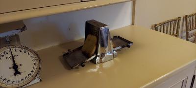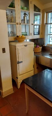 Onward to the Butler's pantry where meal courses are kept warm until serving, we find one of the first electrified refrigerators, knife sharpeners, early toasters and dumb waiter to bring the food up from the basement kitchen.