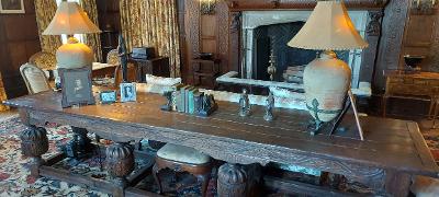 Great tour of a National Register destination! Consider Vanderbilt’s Spanish Baroque front door ‘in reverse’. Its interior heavy hardware finds a counterpart to rose head nails used as an ‘outside’ show of strength & wealth on 17th century British-American doors, like that reconstructed c. 1908-27 at “Home Sweet Home,” East Hampton. Willy K’s huge front door looks like it came from a European castle and was lightheartedly hung to ‘return’ the sea creatures—‘originally’ carved on its interior—to face the elements and incredible views of Northport Harbor.