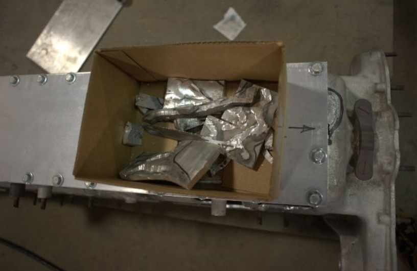 Here’s the result of botched aluminum welding: A box full of scrap metal from an irreplaceable, century-old Indy 500 winner. Actually, it’s the result of metal fatigue in a century-old bearing cap (I’d guess), but the repair attempt didn’t help any. I forgot to ask what was going to happen to these pieces, but they’d make one heck of a gift shop item at Indy.