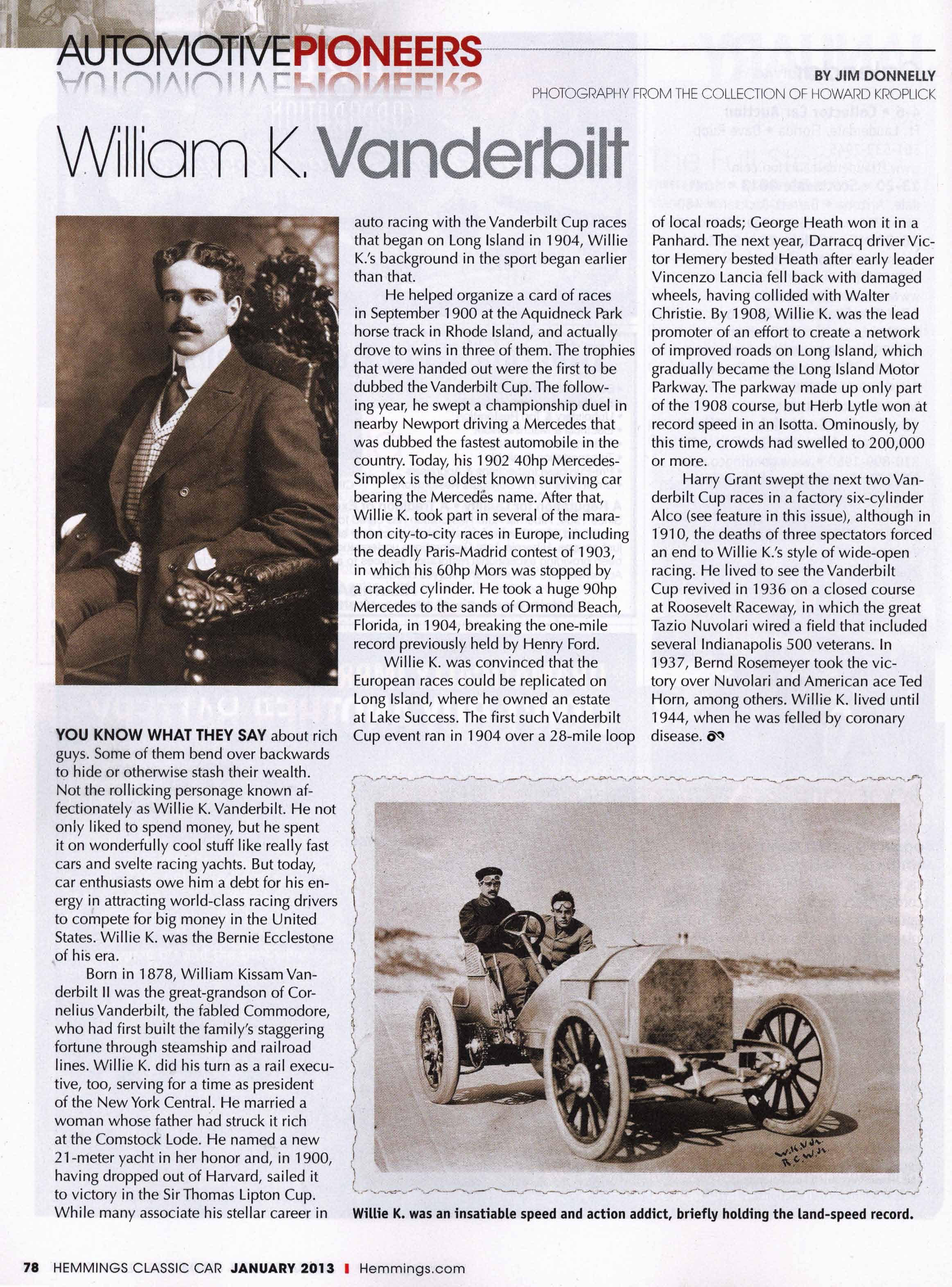 Hemmings Classic Car: Automotive Pioneers- William K. Vanderbilt, Jr.