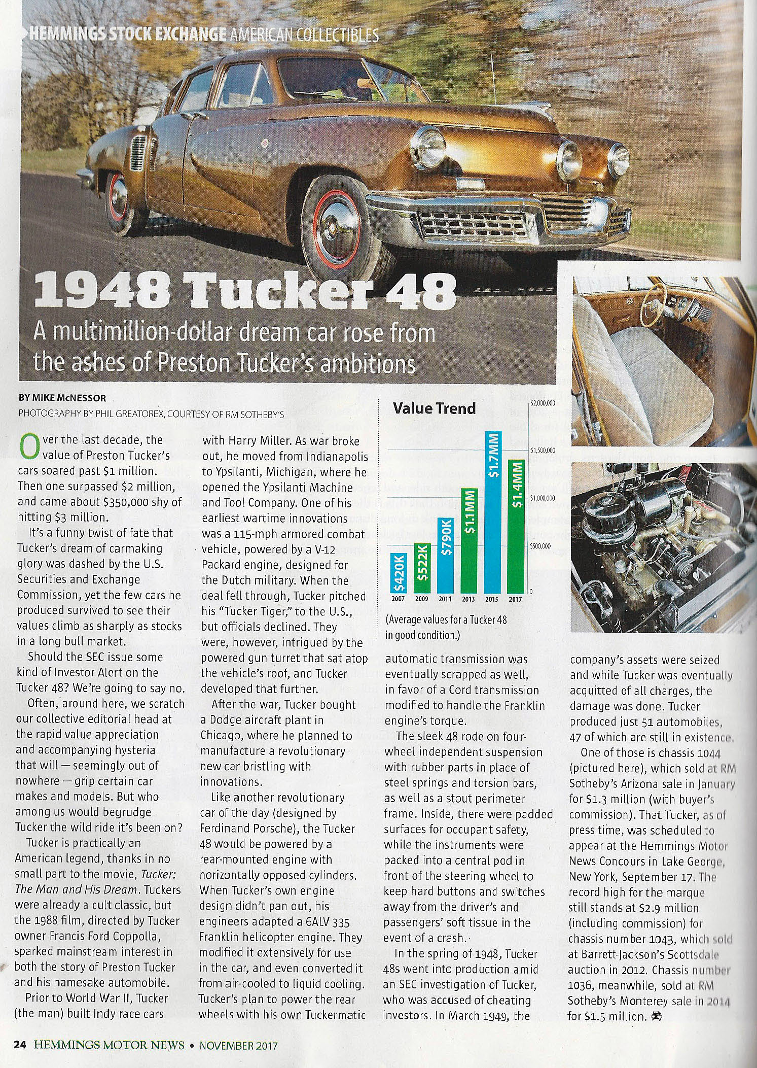 Hemmings Motor News published articles and photos of the Tucker 1044 in its October and November issues.
