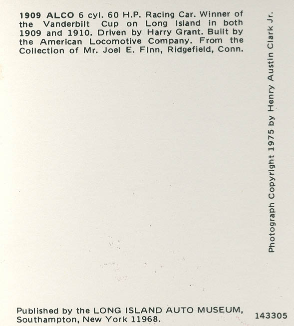 Long Island Automotive Museum Postcard 1909 Alco Black Beast