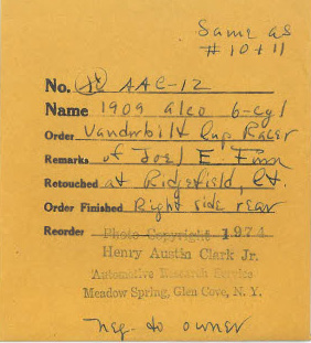 Seeking material for the Long Island Automotive Museum's postcard series, Henry Austin Clark, Jr. visited collector Joel E. Finn (1938-2017) at his Ridgefield, Connecticut home. Among  the 1974 images captured by Clark were these photos of the Alco Black Beast, which was then owned by Joel.