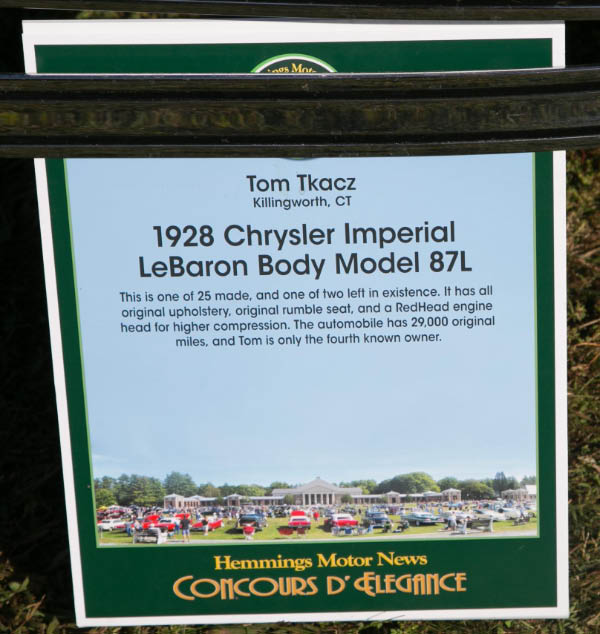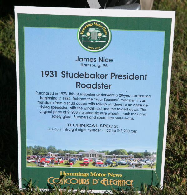 The Ninth Hemmings Motor News Concours d'Elegance held last Sunday was great fun with 166 special vintage cars. Below are profiles of several of the many spectacular automobiles.