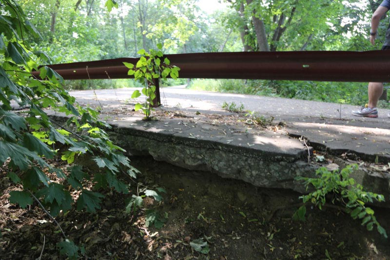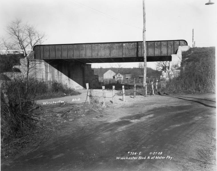 Remains of the Motor Parkway on the east embankment of the Winchester Boulevard Bridge.
