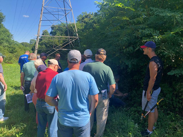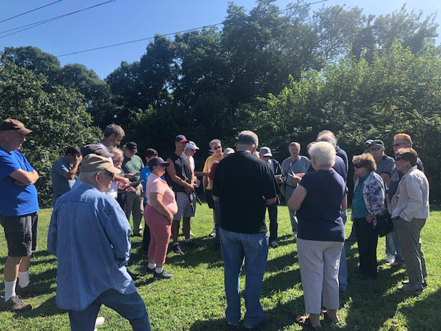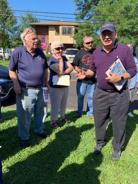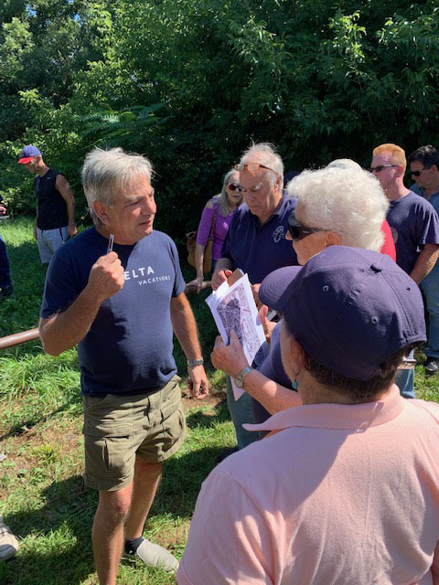 Al Velocci discussing the site of the Nibbe Farmway Motor Parkway Bridge.